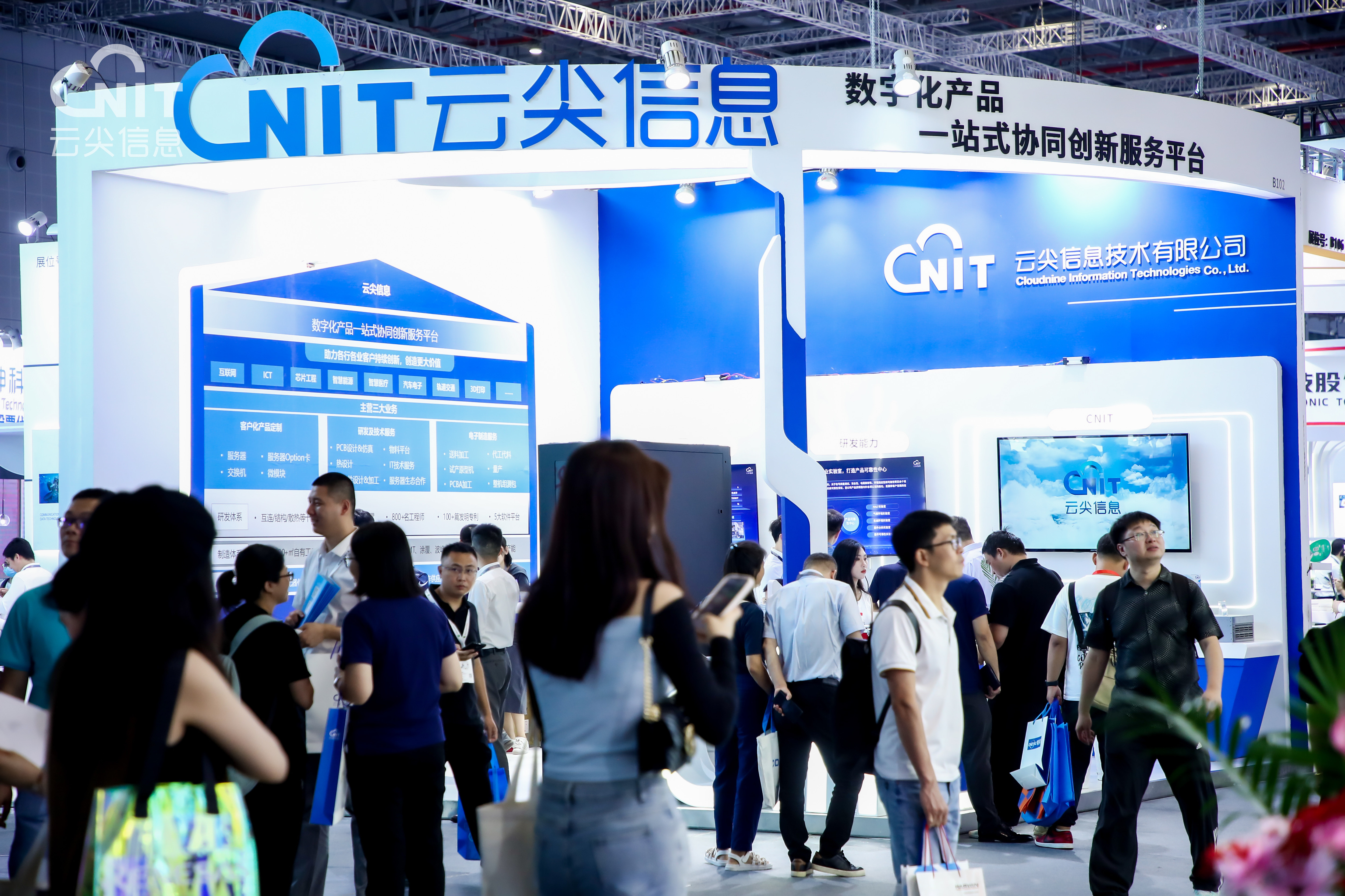 7月11日-13日,極具業界影響力、規模盛大的2023慕尼黑上海電子展在上海國家會展中心舉行,云尖信息首次攜研發、制造成果亮相線下電子展會,向10萬余位現場觀眾展現一站式研發、制造能力,收獲滿滿人氣。